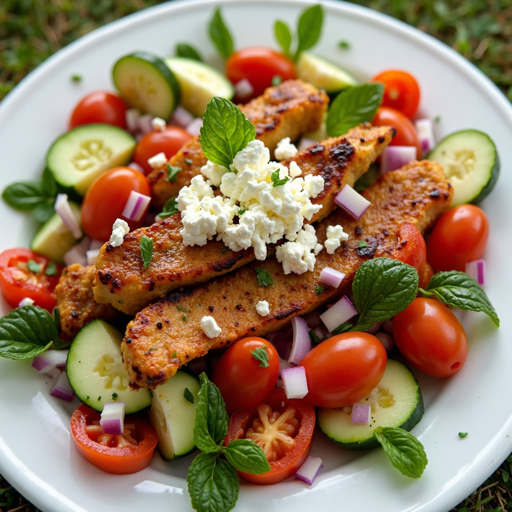 Esta ensalada es un plato saludable, rica en proteínas y fibra, gracias a los Qebapa y otros vegetales. El uso de aceite de oliva virgen extra añade beneficiosos ácidos grasos, mientras que el queso feta aporta calcio y sabor característico. Para una versión aún más saludable, puedes usar aceite de oliva con menos calorías o reducir la cantidad de queso feta.