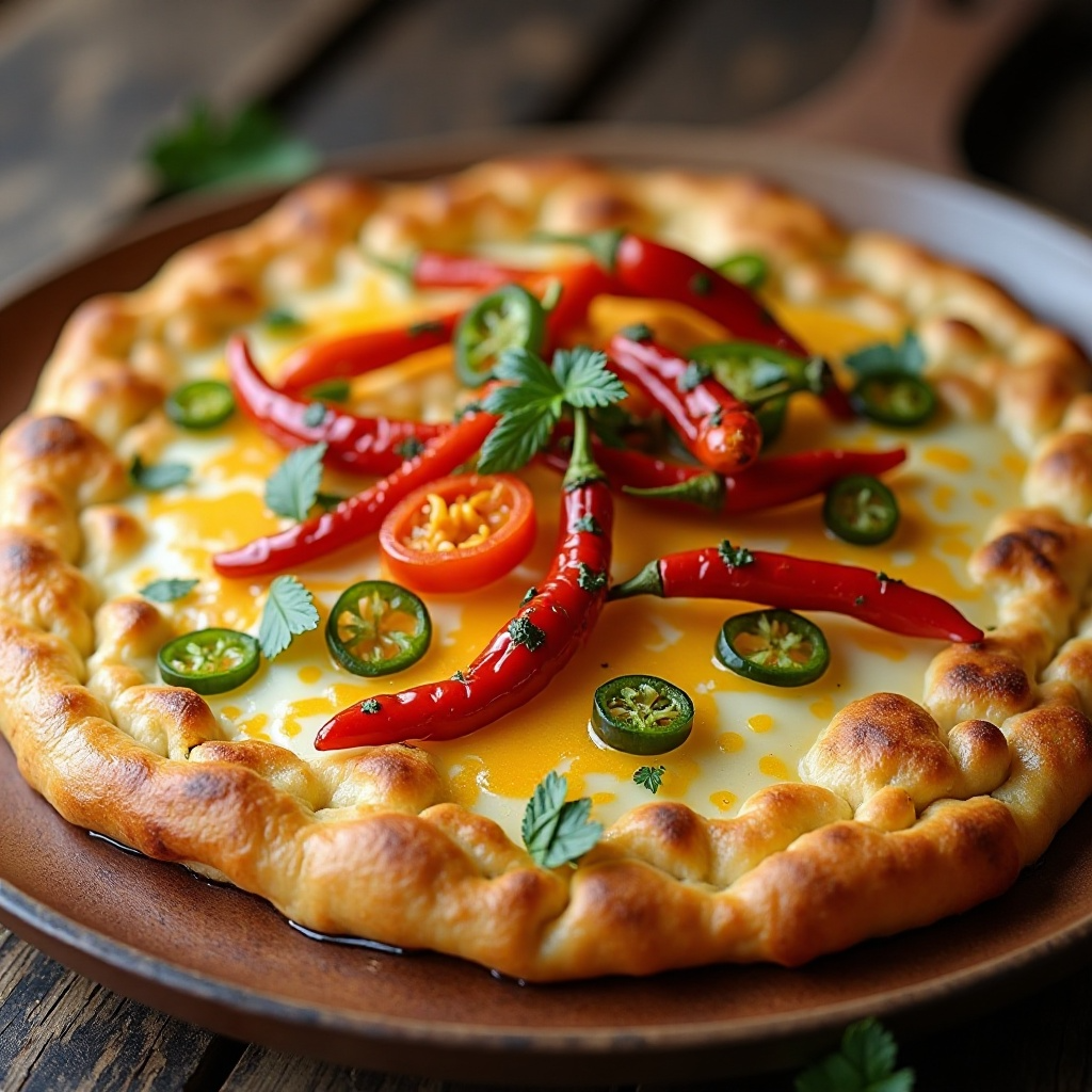 El langos es un plato tradicional de Budapest, Hungría, que se origina en la región de Transdanubia. Tradicionalmente, el langos es un pan plano frito con toppings como cebolla caramelizada y queso. Esta versión innovadora integra ingredientes internacionales como queso cheddar y chiles frescos, creando una fusión de sabores húngaros e internacionales.