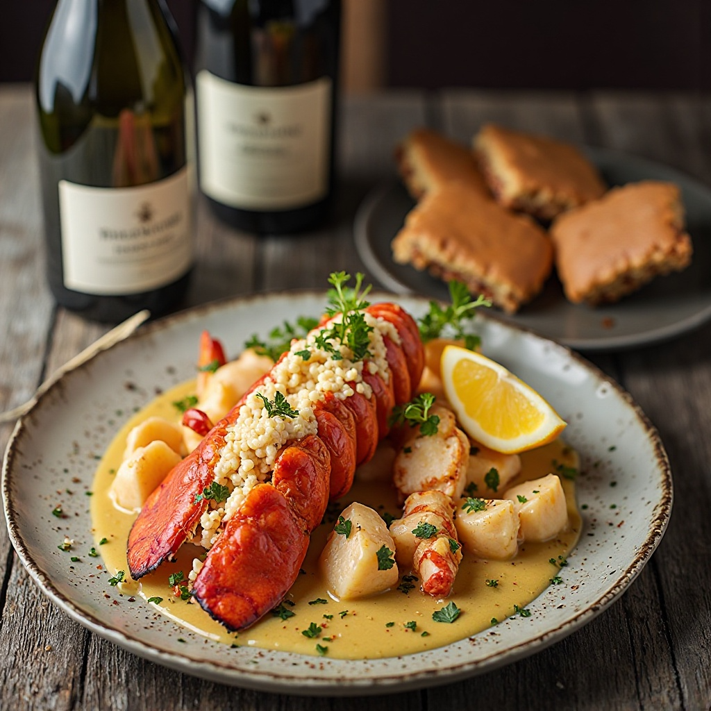 Este plato fusiona los sabores de la costa italiana con los refinados de la región de Bordeaux, Francia. La langosta se cocina en una salsa Bordelaise, enriquecida con un vino blanco seco local, capturando así el espíritu de Porto-Vecchio y sus cercanías. Ideal para ocasiones especiales o cenas elegantes, este plato deleitará tanto a los amantes de la mariscos como a los entusiastas de la buena mesa.