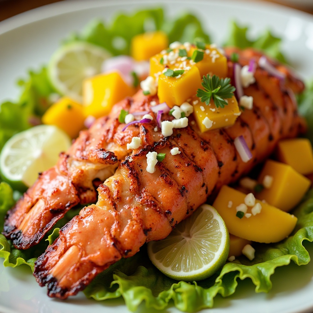Receta de Langosta a la Parrilla con Ensalada Fresca de Mango y Jícama