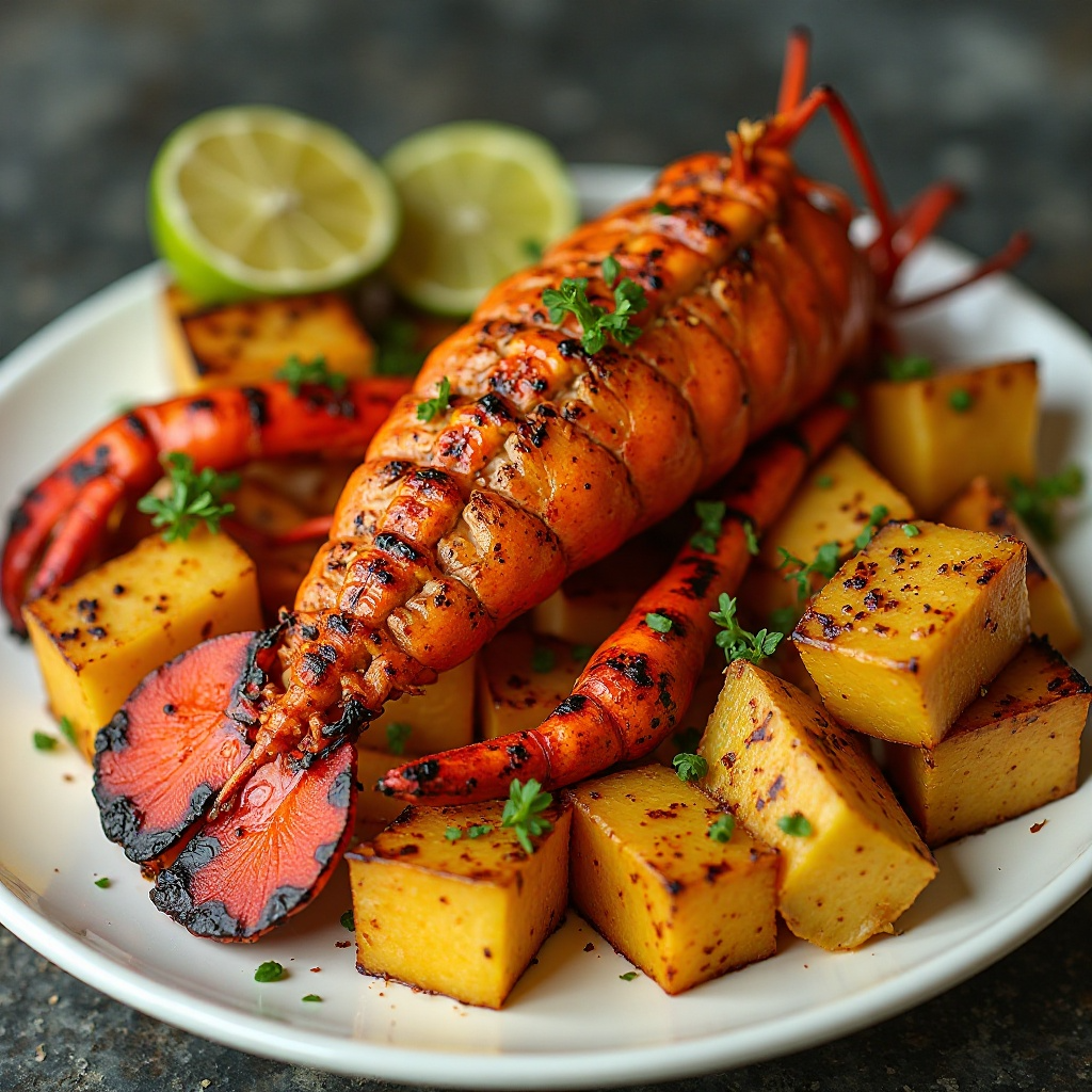 Receta de Langosta a la Parrilla con Jícama y Yuca en el Estilo de Gibara, Caribe