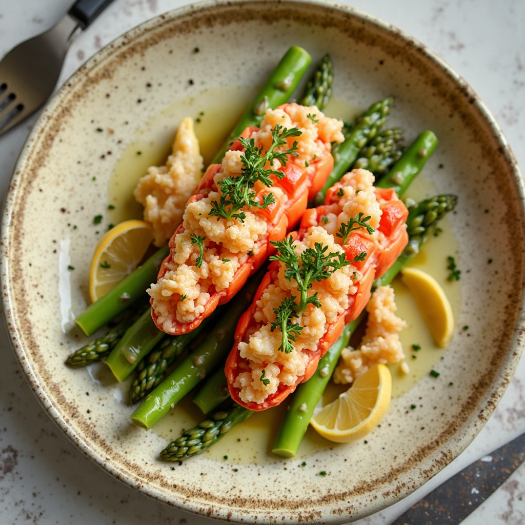 La langosta es rica en proteínas y ácidos grasos omega-3, esenciales para la salud cardiovascular. Los espárragos son bajos en calorías y altos en fibra, vitaminas y minerales. Este plato ofrece una combinación balanceada de nutrientes, siendo una opción saludable sin renunciar al sabor.