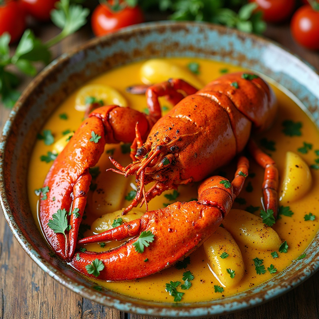 La langosta es una excelente fuente de proteínas magras y contiene ácidos grasos omega-3, conocidos por sus beneficios para la salud cardiovascular. El curry en polvo también aporta antioxidantes y puede mejorar la digestión. Evita añadir demasiada sal para controlar la ingesta de sodio.