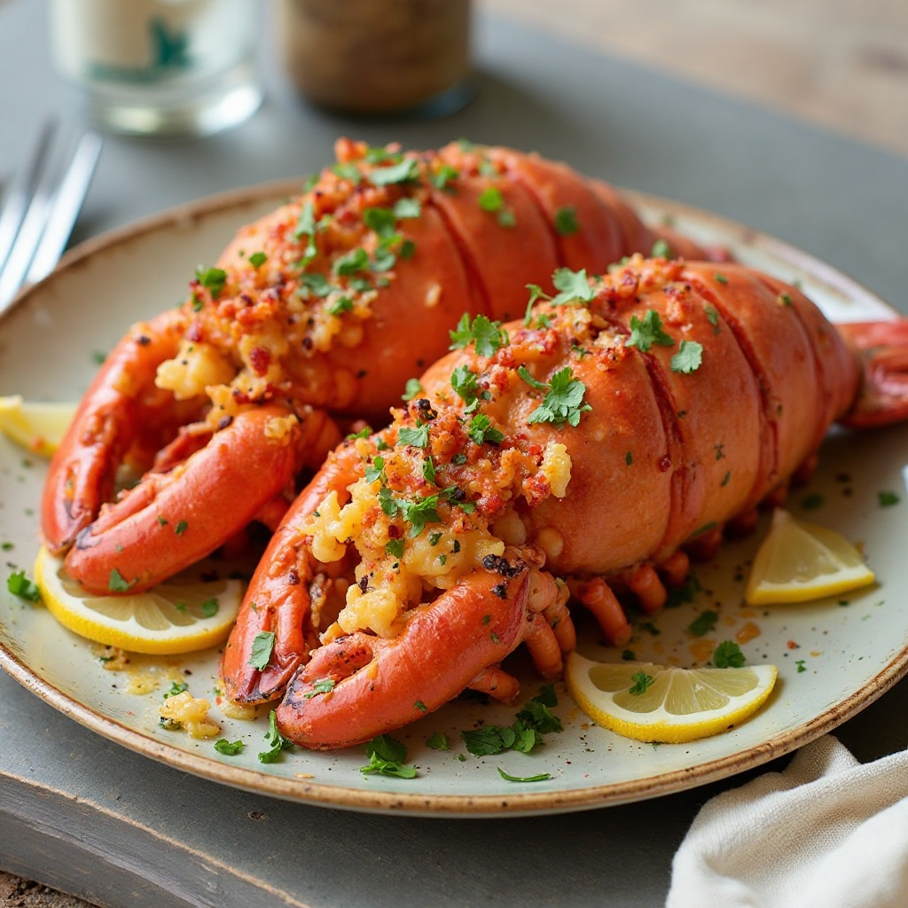 - Sirve la langosta con su jugo de limón y las hierbas sobre un plato, listo para disfrutar.