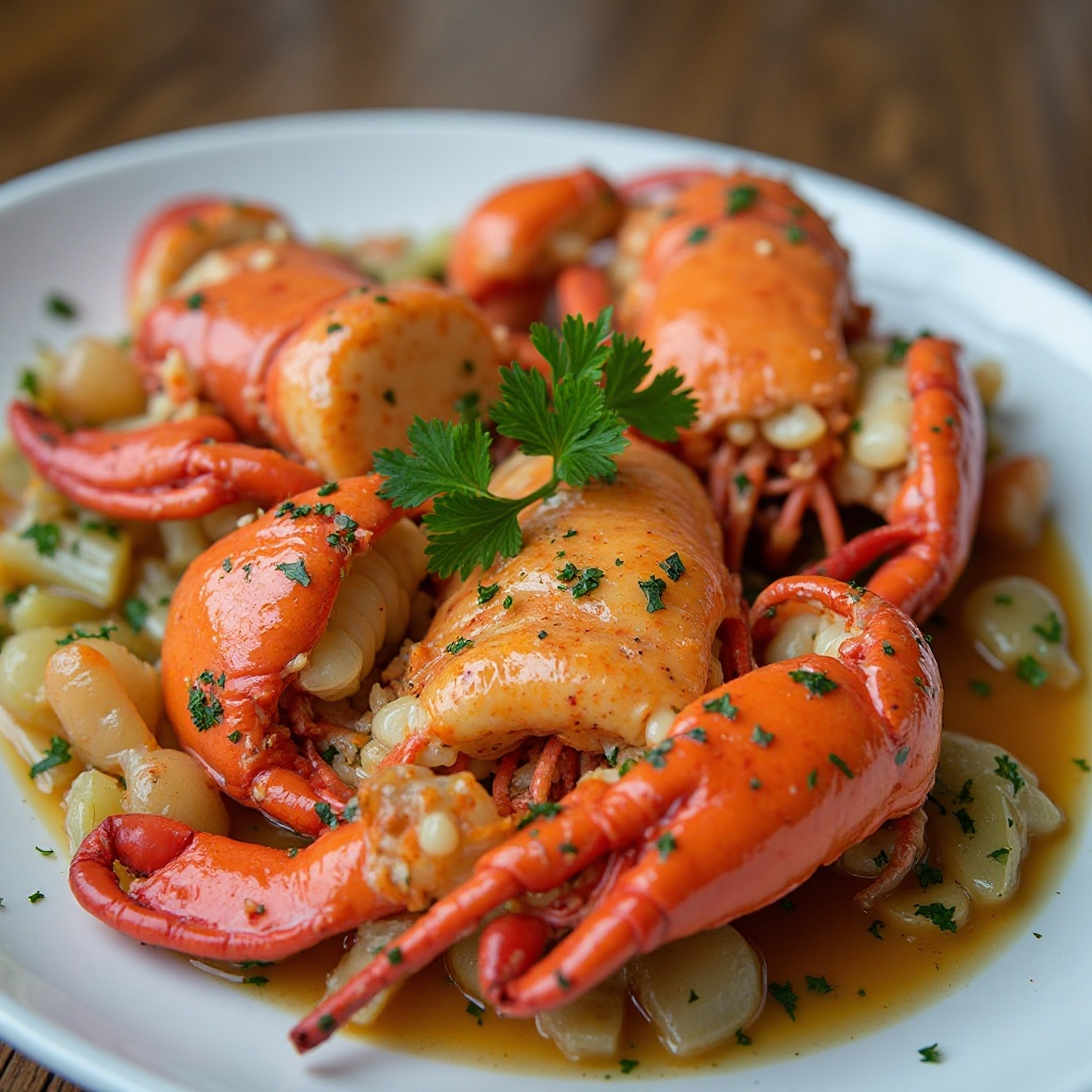 - Sirve la langosta en platos individuales, acompañada de las verduras cocidas y decorada con perejil fresco si lo deseas.