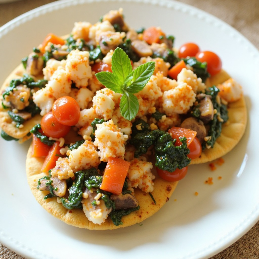 7. Sirve la mezcla en platos individuales, adornando con hojas de menta fresca para añadir frescura y color visual.