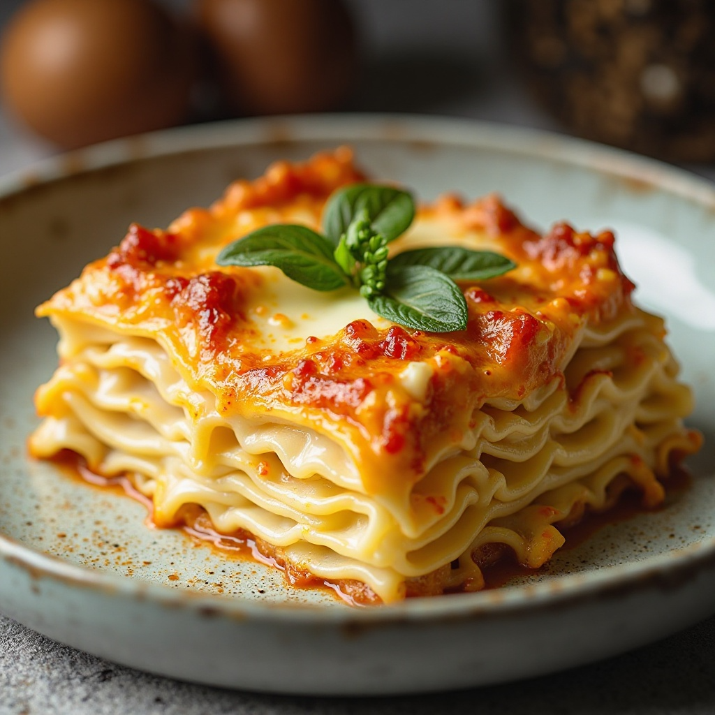 El queso pecorino es un pilar de la cocina italiana, especialmente en las regiones montañosas como Aquila. Su producción tradicional se remonta a siglos atrás y su sabor robusto se integra perfectamente en platos como esta lasaña. Servir esta receta en una cena en Italia podría llevar a conversaciones sobre la rica historia y tradición culinaria del queso pecorino, haciendo que la experiencia gastronómica sea aún más enriquecedora.