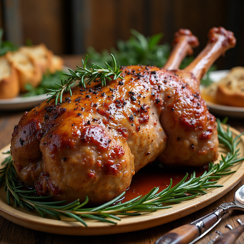 - Coloca el ramillete de romero sobre el cordero y asa durante aproximadamente 1 hora y media, o hasta que la carne esté bien dorada y los jugos estén en su punto.