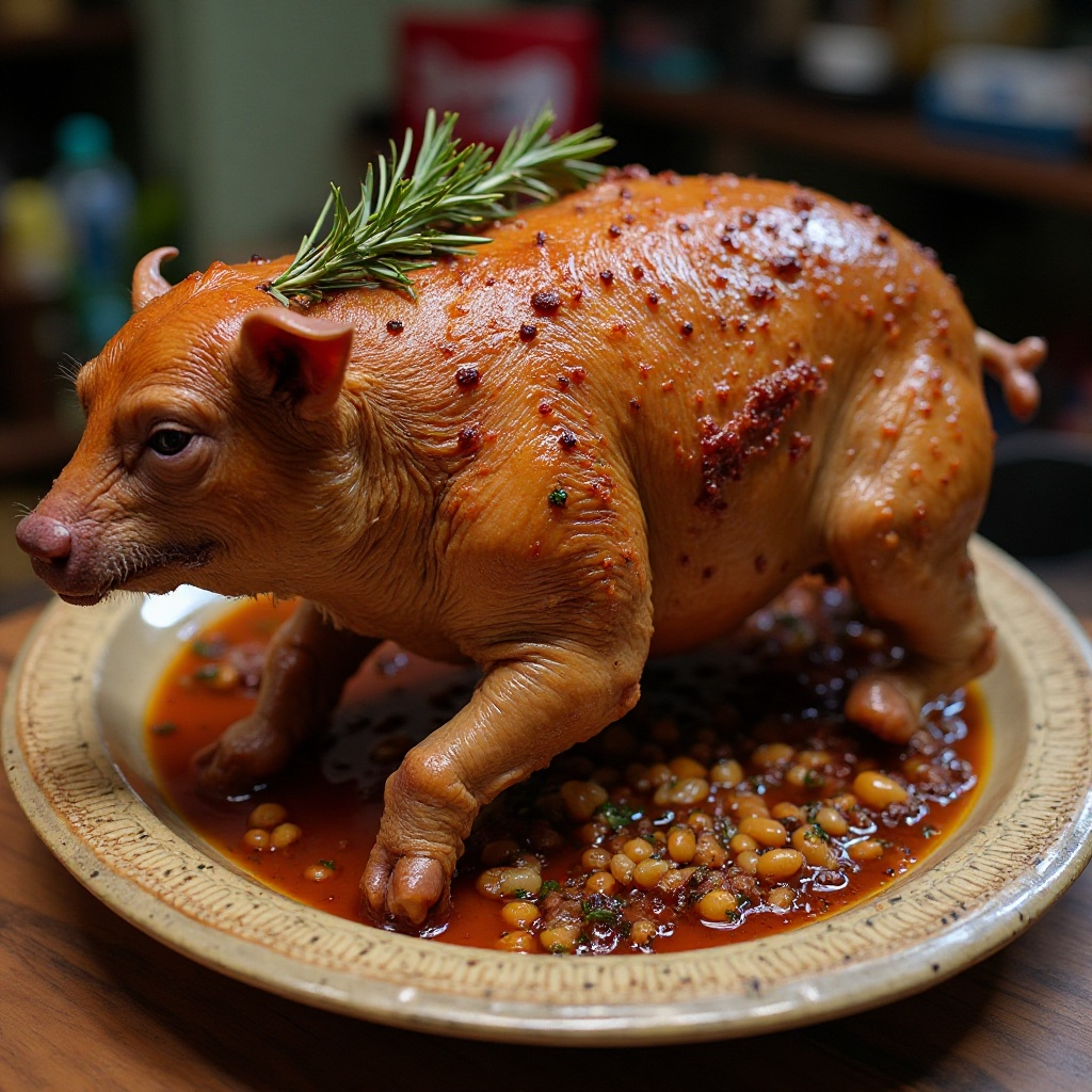 - Prepara un asador o un horno precalentado a 180°C (350°F). Coloca el lechón en el asador, asegurándote de que esté bien expuesto para la cocción uniforme.
