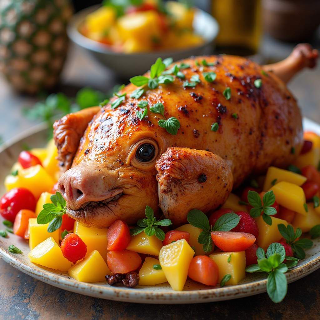 Receta de Lechón Asado con Ensalada de Frutas Tropicales