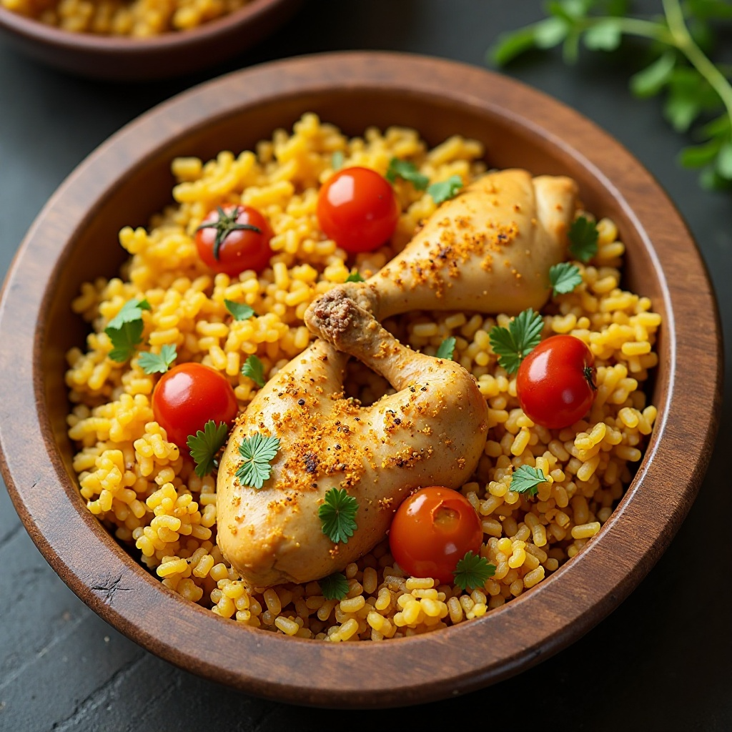 Machboos es un plato tradicional de Kuwait, conocido por su aromático arroz y carne. Esta receta destaca por su combinación única de especias y el uso de pollo como ingrediente principal, ofreciendo una experiencia culinaria llena de sabores árabes. Es ideal para disfrutar en una cena familiar o para impresionar a amigos con un toque auténtico de la gastronomía kuwaití.