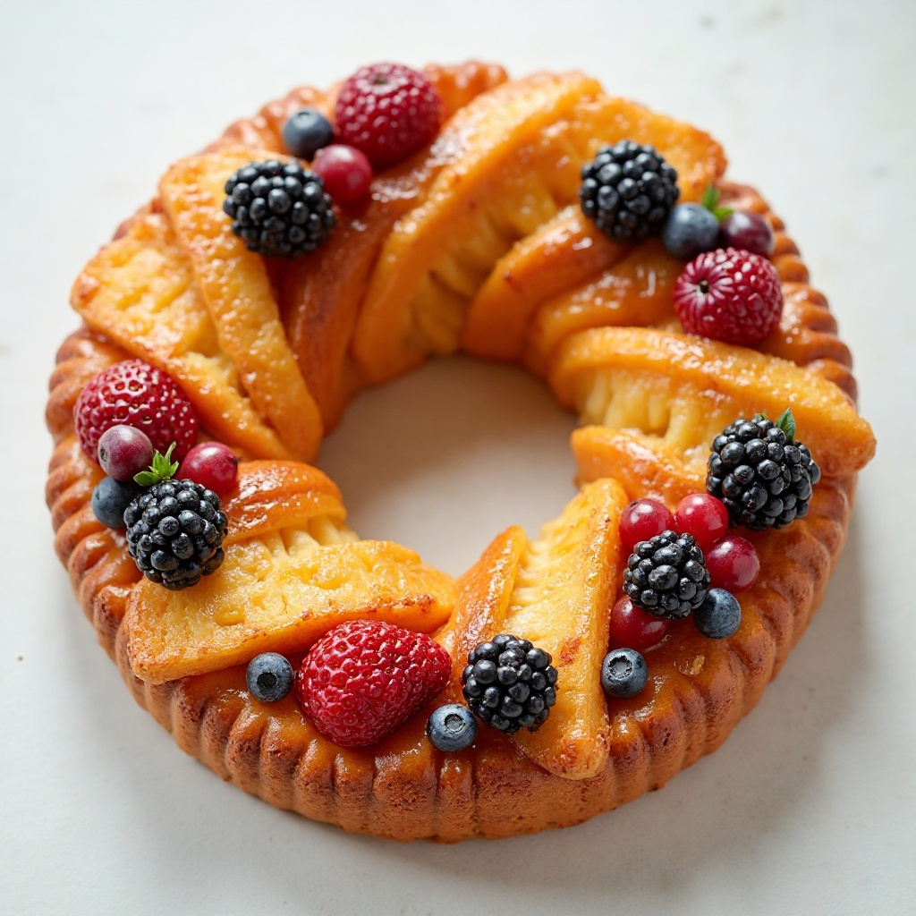 - Retira del horno y deja enfriar. Una vez frío, decora con frutas locales como fresas, cerezas, arándanos y piña, asegurándote de colocarlas en un patrón que simbolice el emblema de Magdeburgo.