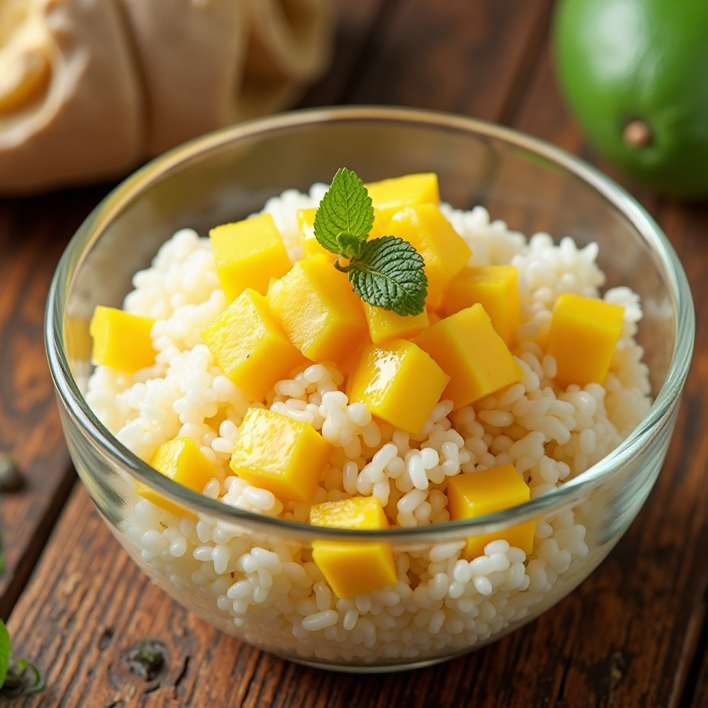 El Mango Sticky Rice es una delicia tropical y muy popular en Tailandia, especialmente en la región de Chumphon conocida por su producción de frutas exóticas. Este plato combina la dulzura natural del mango con el arroz glutinoso, tradicionalmente servido con un toque de crema de coco, creando una armonía perfecta entre sabores y texturas.