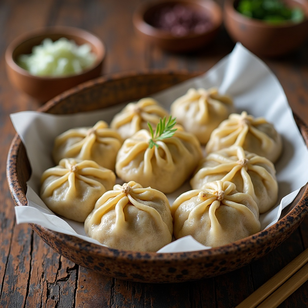 Los mantí son una joya culinaria de Kirguistán, un país de la región de Asia Central. Estos pequeños dumplings se cocinan tradicionalmente en agua y se sirven con mantequilla clarificada y kymyz, una bebida fermentada de cabra, que le da un sabor único al plato. Aunque esta receta no incluye kymyz por su dificultad de acceso fuera de Kirguistán, conserva el espíritu auténtico de la preparación manteniendo otros ingredientes locales y accesibles.
