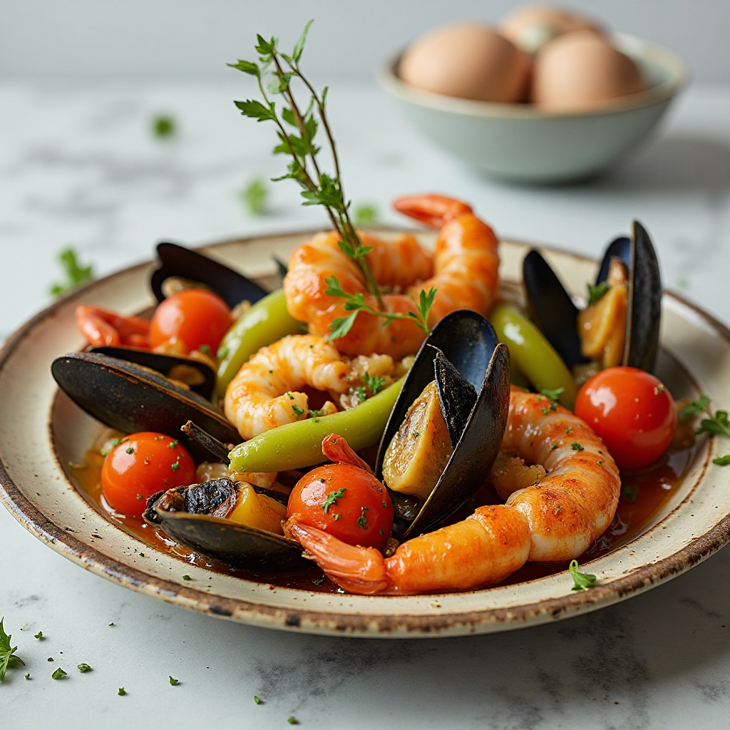 - Agrega los mariscos variados a la sartén. Cocina a fuego medio hasta que los mariscos estén cocinados y las almejas hayan abierto, aproximadamente 5-7 minutos.