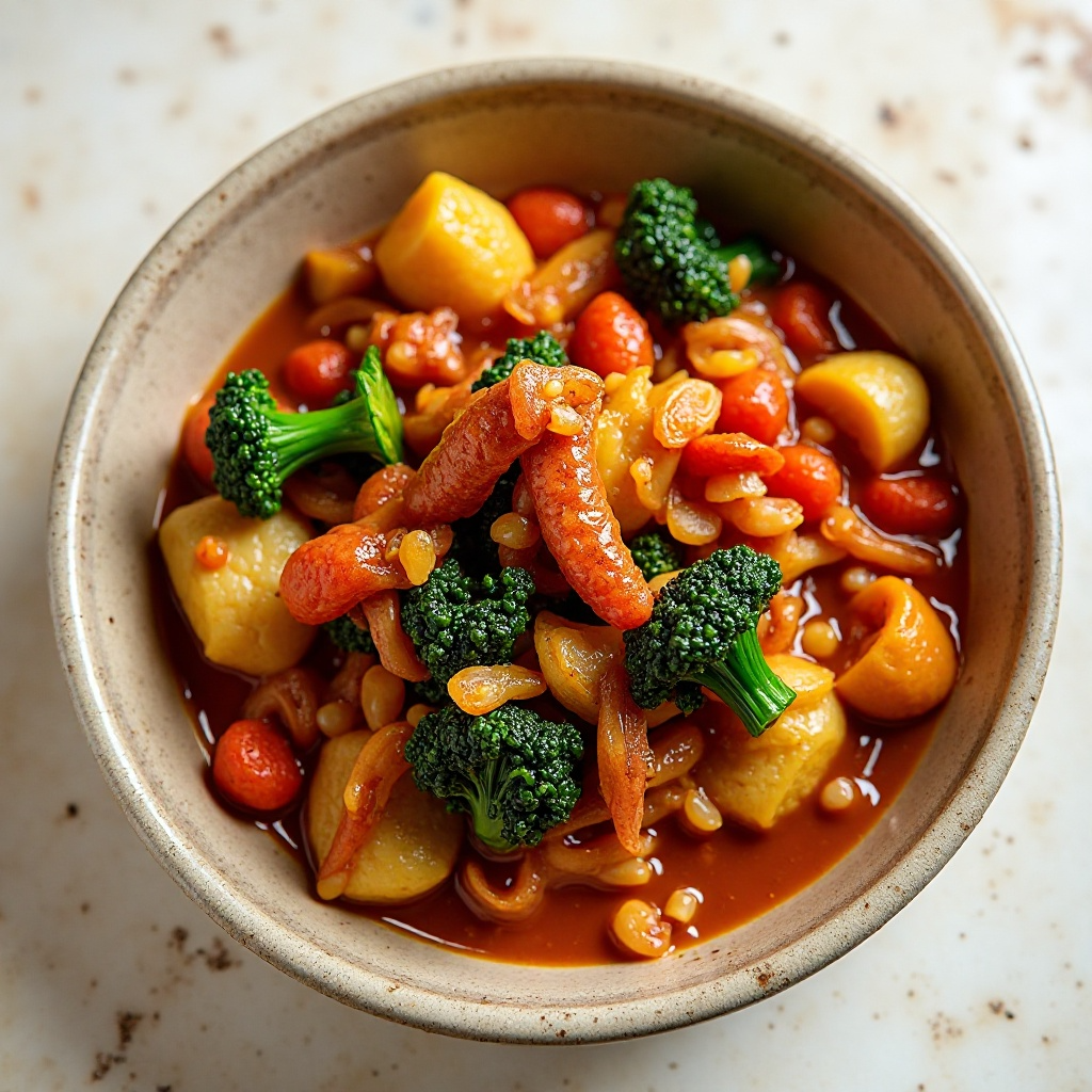 El Mopane Worm es un alimento tradicional de África Subsahariana, incluyendo Zimbabwe. Estos gusanos se consumen después de ser cocinados y se utilizan en muchas recetas, como sopas y platos principales, ofreciendo una fuente importante de proteínas. Esta receta adaptada mantiene el espíritu del plato original pero lo hace accesible para quienes prefieren no incluir los gusanos en su dieta.