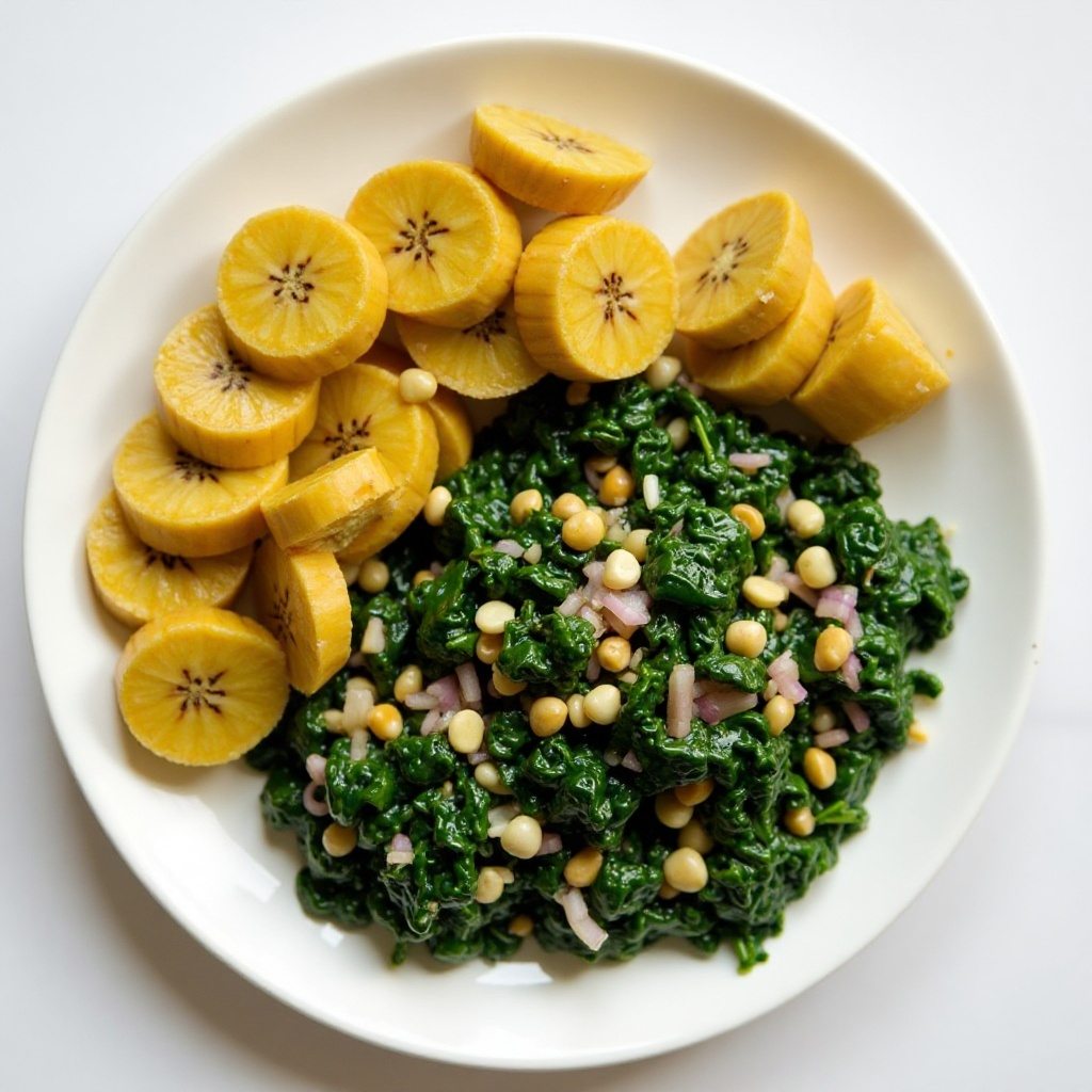 El matooke es un alimento básico en la dieta ugandesa, especialmente en regiones rurales. Originalmente se servía con alimentos como la carne o los guisos, pero la versión aquí presentada con espinacas frescas es una adaptación moderna que refleja la creciente conciencia sobre la nutrición y la importancia de incluir vegetales en la dieta diaria. Kampala, siendo la capital de Uganda, es un punto de encuentro cultural donde las tradiciones se mezclan con nuevas influencias gastronómicas, destacando platos como este que combinan lo tradicional con un enfoque saludable.