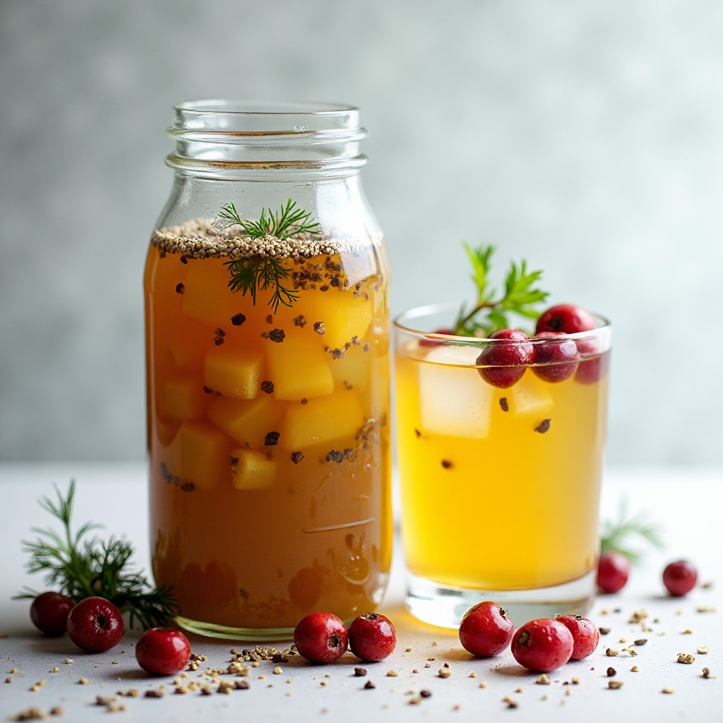 - Para servir, filtra el Medovukha a través de un colador fino o una tela de cocina. Sirve frío y adorna con bayas silvestres o cranberries recién añadidas para un toque visual y de sabor adicional.