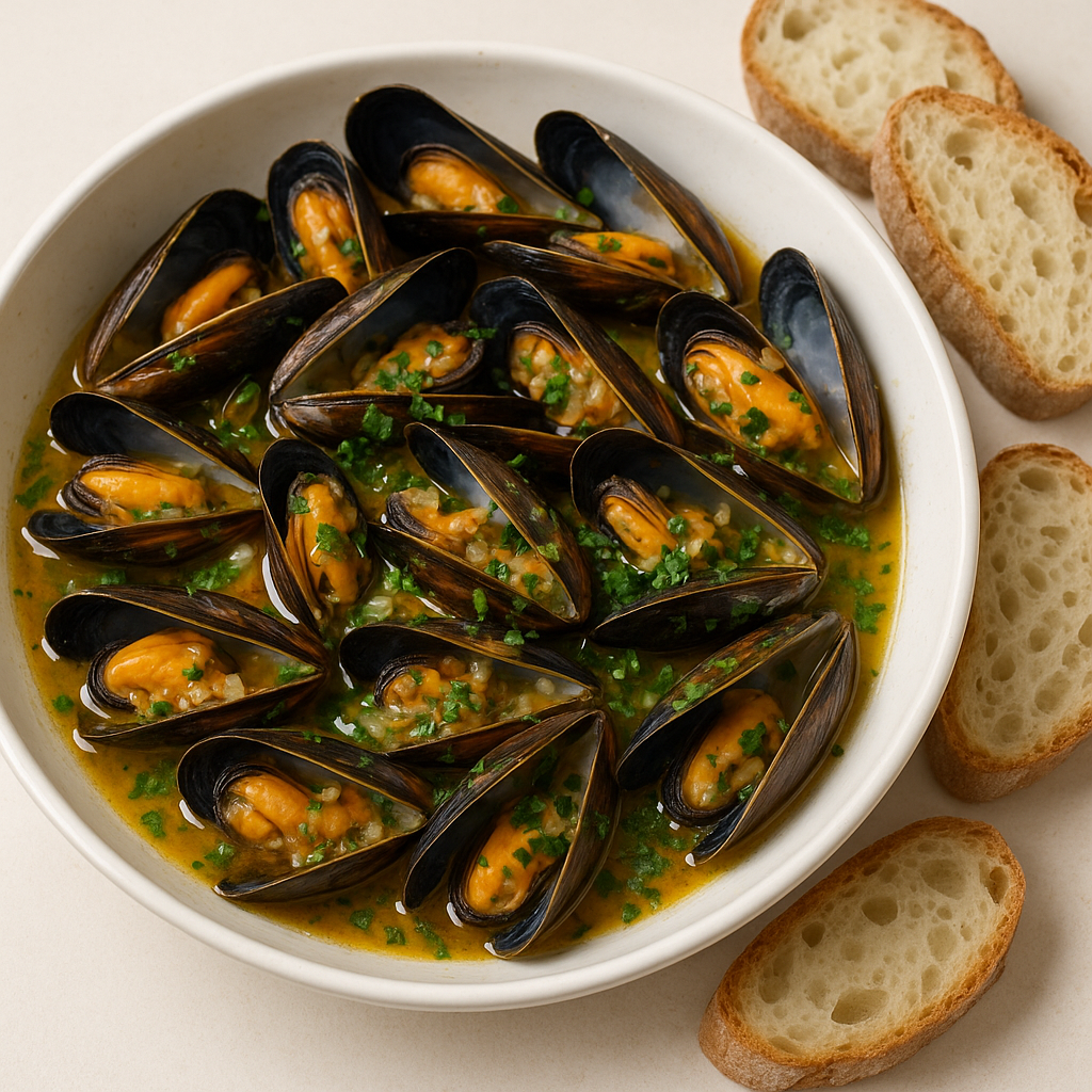 Fisterra, situada en la Costa da Morte de Galicia, es conocida por su impresionante paisaje marítimo y su rica tradición pesquera. Los mejillones gallegos son considerados de los mejores del mundo, gracias a las rías que proporcionan un hábitat óptimo para su crecimiento. El vino Albariño, característico de la región, complementa a la perfección los sabores del mar, convirtiendo este plato en una joya de la cocina gallega.