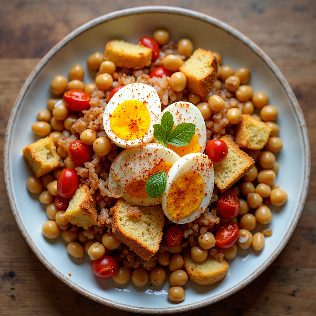 Las migas Alcalaínas son un plato tradicional de Alcalá de Henares, una ciudad rica en historia y gastronomía. Esta receta es una variante de las famosas migas manchegas, adaptada para los sabores locales y la abundancia de productos agrícolas de la región. Es un plato reconfortante, perfecto para compartir en una comida familiar o para una cena especial.