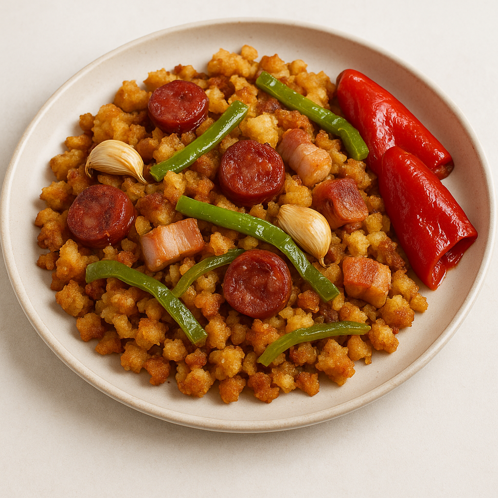 Las migas de pastor son un plato energético ideal para días fríos o actividades intensas. Aunque su contenido calórico es alto por la panceta y el chorizo, puedes reducir las cantidades de estos ingredientes o sustituirlos por opciones más magras, como jamón serrano. Añadir pimientos y otros vegetales aumenta el aporte de vitaminas y antioxidantes.