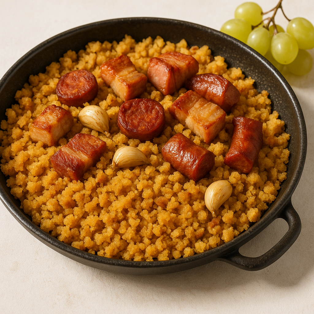 Las migas ruleras son un plato tradicional de la gastronomía manchega, muy popular en Albatana, un municipio de la provincia de Albacete. Este plato tiene sus orígenes en la cocina pastoril, cuando los pastores aprovechaban el pan duro para preparar una comida contundente y energética. Acompañadas de embutidos, uvas o incluso sardinas, las migas son una auténtica delicia rural.