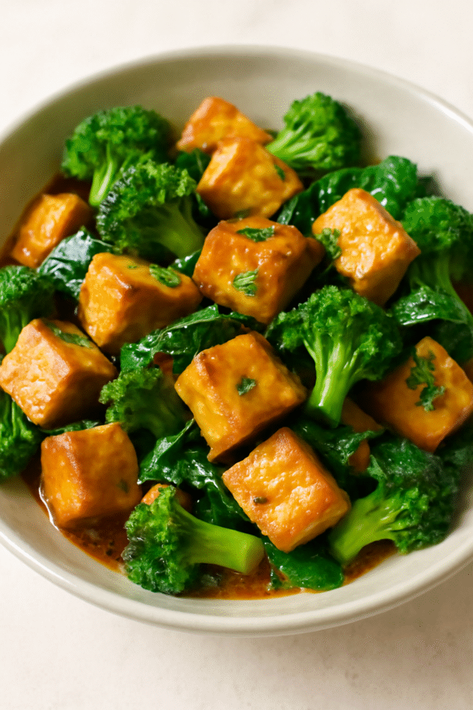- Añade los cubos de tofu y saltea hasta que estén dorados y cocidos por dentro. Retira del fuego y reserva.