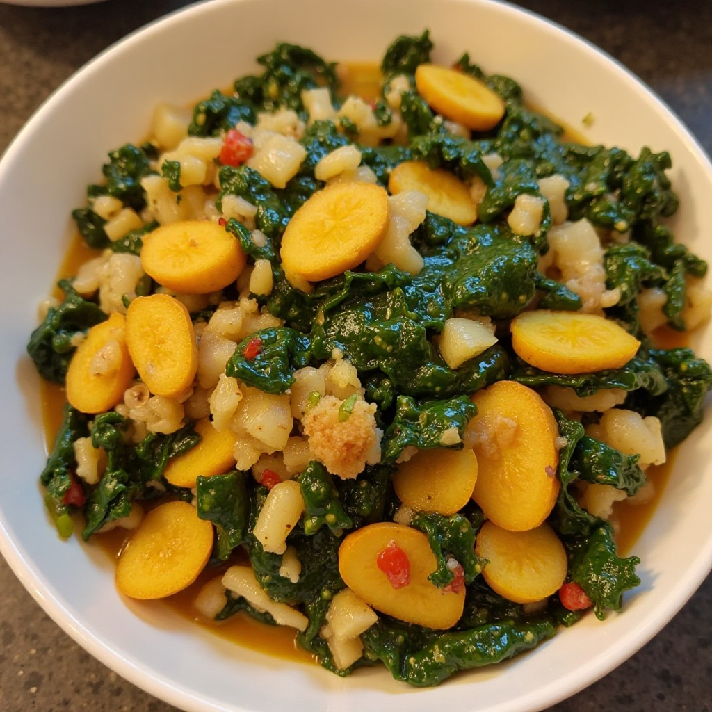 El Moengo Baka Bana es un sabroso plato de hoja cocida originario de Surinam, que se disfruta especialmente en regiones con acceso a ingredientes locales como la Baka Bana, una variedad de plátano nativo de Surinam. Este plato es una excelente fuente de carbohidratos y nutrientes esenciales, y su preparación es un reflejo del conocimiento culinario ancestral de la región.