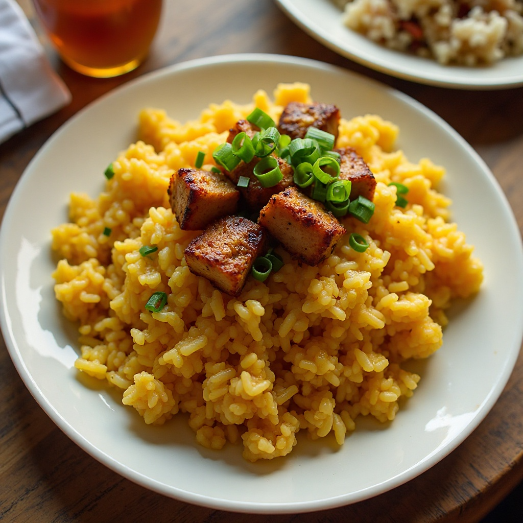 El mofongo es rico en carbohidratos complejos provenientes del plátano y arroz, lo que lo hace ideal para una dieta balanceada. Sin embargo, debido al alto contenido de grasa en los chicharrones, esta receta debe ser disfrutada ocasionalmente. Para una versión más saludable, puedes sustituir los chicharrones por pollo o tofu marinados, y reducir la cantidad de aceite usado en la preparación.