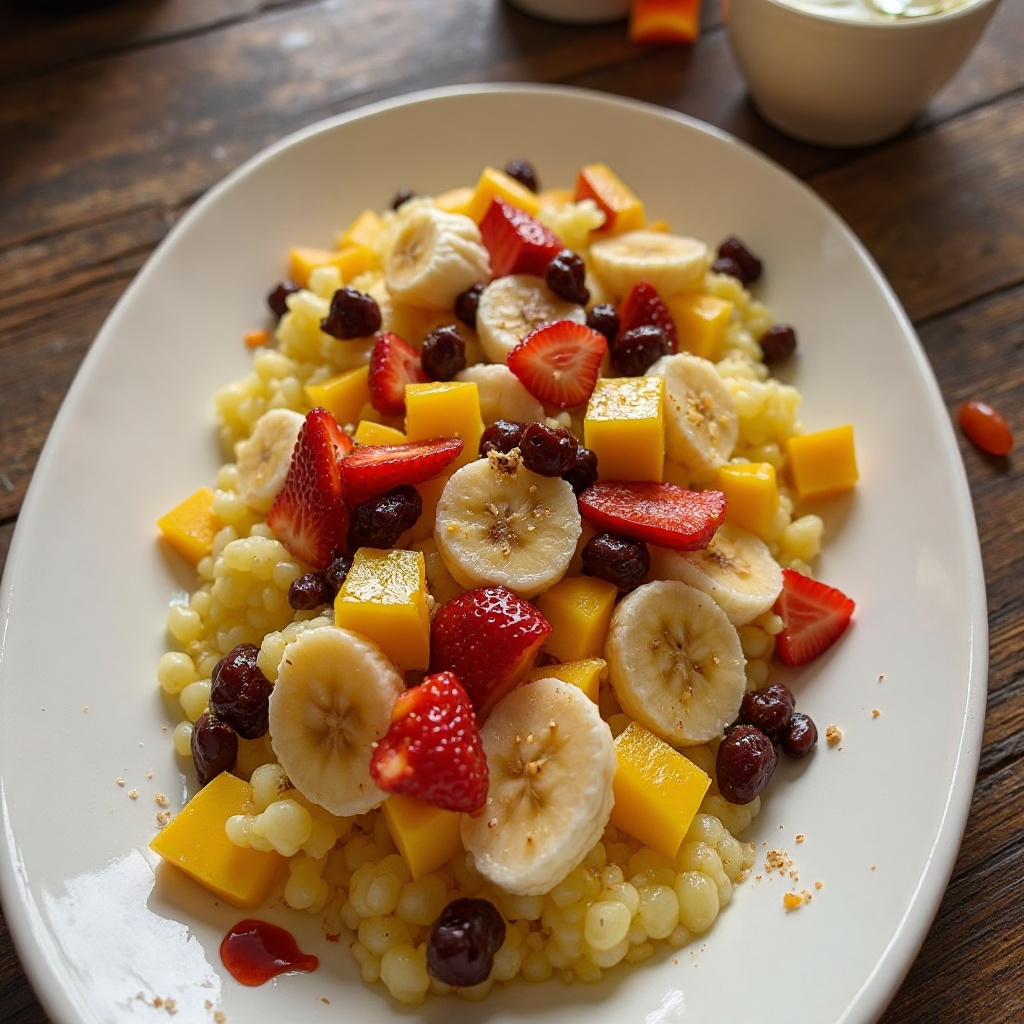 Este plato no solo es delicioso, sino también muy saludable. La yuca es rica en vitaminas B y C, así como en minerales esenciales. Las frutas tropicales añadidas, como el plátano, el mango y las fresas, proporcionan antioxidantes, fibra y vitaminas A y C. Además, las uvas pasas son una fuente de energía natural. El aceite de oliva añade un toque de grasas saludables.