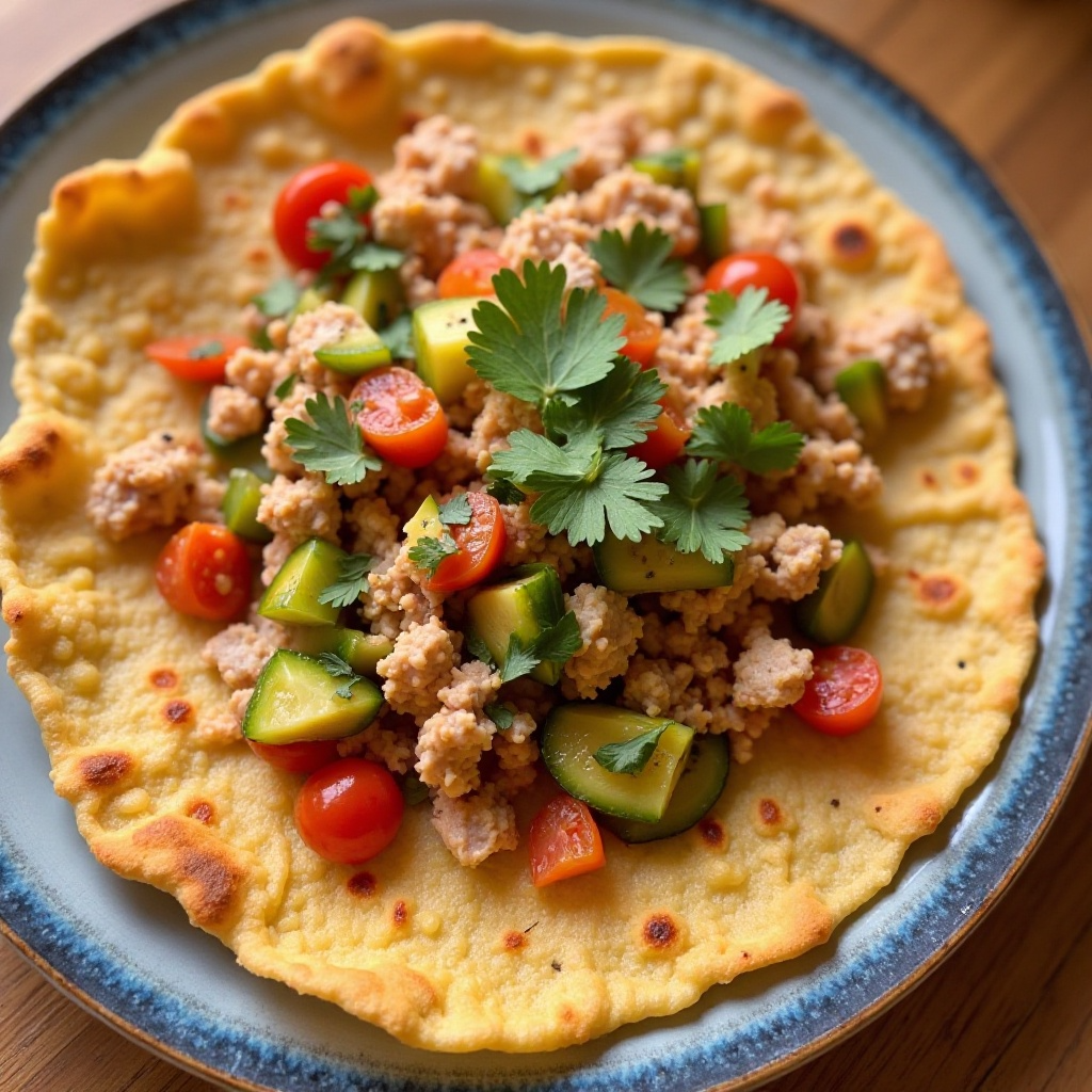 - Rellena los discos de frybread con la mezcla de verduras y atún, agregando una generosa cantidad de cilantro fresco picado por encima.