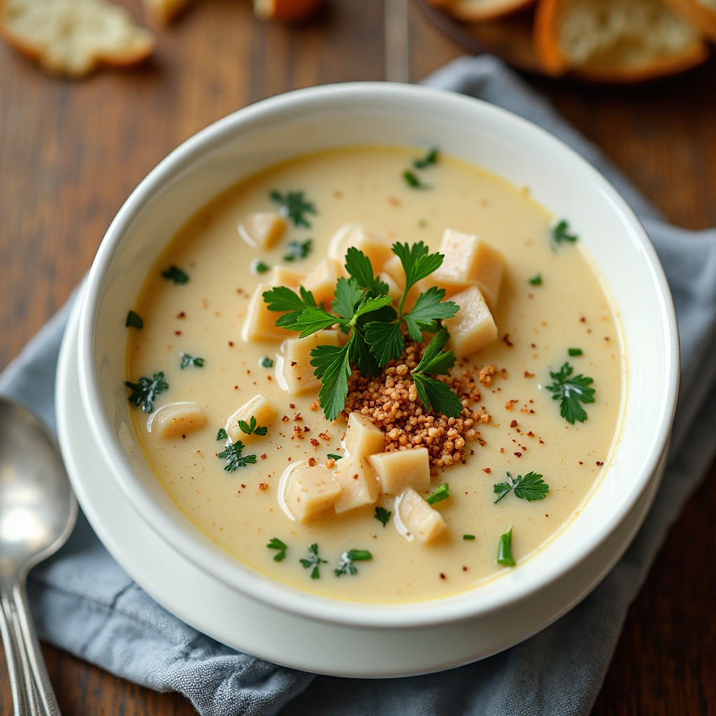 El New England clam chowder es un plato emblemático de la región de New England en los Estados Unidos, caracterizado por su consistencia cremosa y el uso de moluscos locales como el mejillón del Narragansett, conocido aquí como «clam». Esta receta ofrece una versión tradicional que captura el sabor auténtico de las costas de Rhode Island, especialmente en East Providence, un pequeño municipio costero.