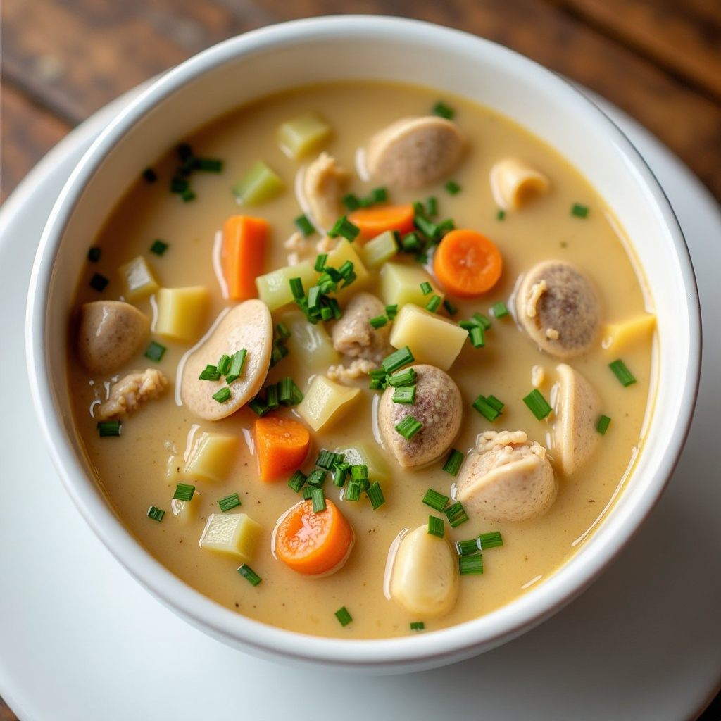 Este caldo de mariscos es una fuente rica en proteínas y nutrientes del mar. Los ingredientes como las almejas son bajas en calorías y altas en minerales como el calcio. Sin embargo, debido al alto contenido de sodio y grasas, aquellos con condiciones de salud específicas deben moderar su consumo. Una versión sin nata puede ser más saludable, pero sacrificará parte de su cremosidad característica.