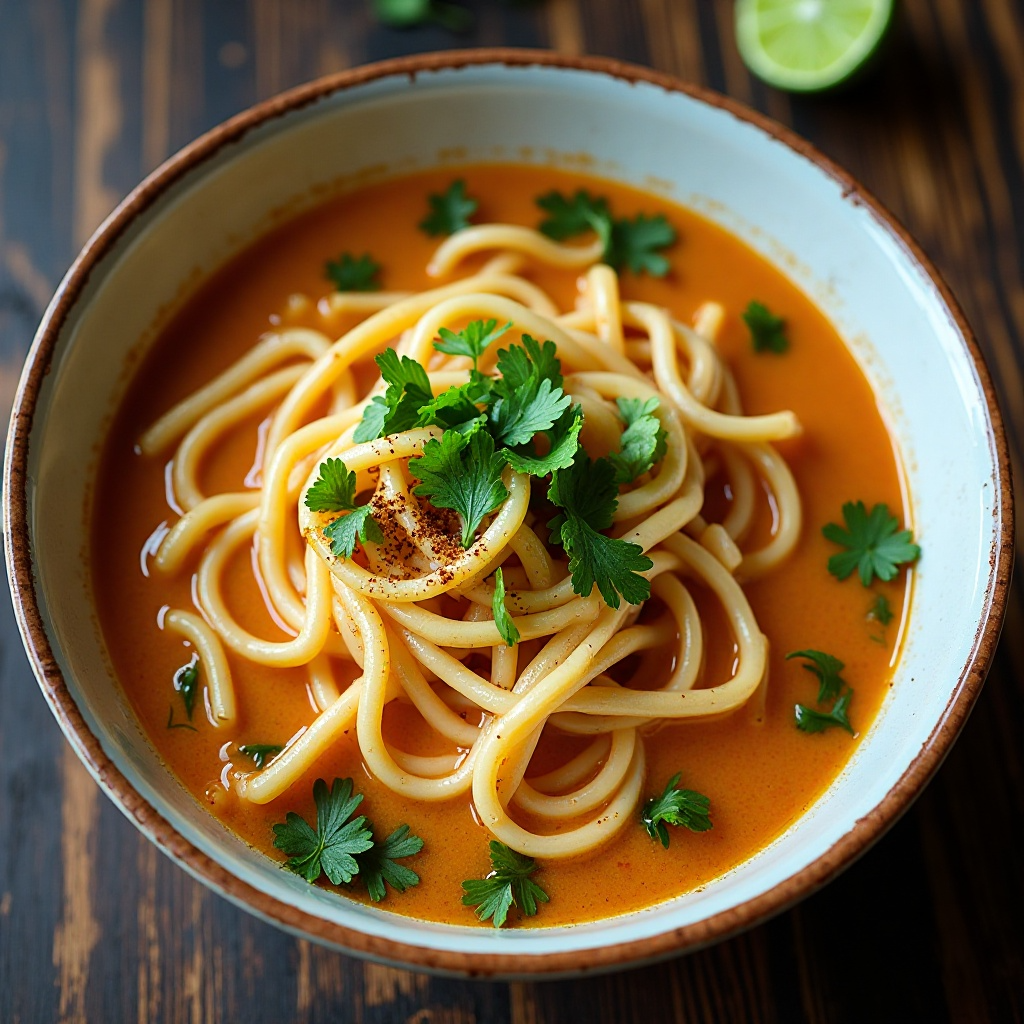 - Añade los noodles a la olla con el caldo de laksa y cocina por unos 3-5 minutos hasta que estén al dente. Retira los noodles con una red para espaguetis y reserva.