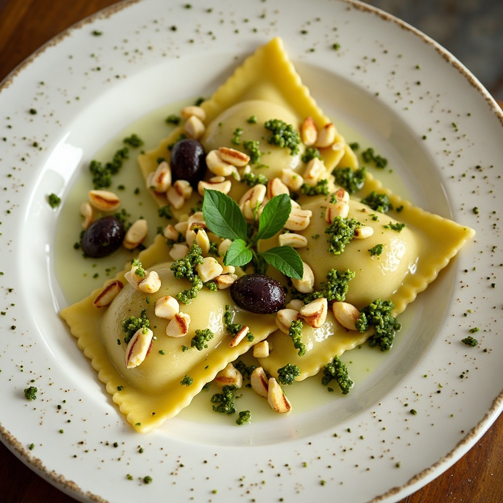 Receta de Numana: Ravioli al Pesto con «Olive all’ascolana»