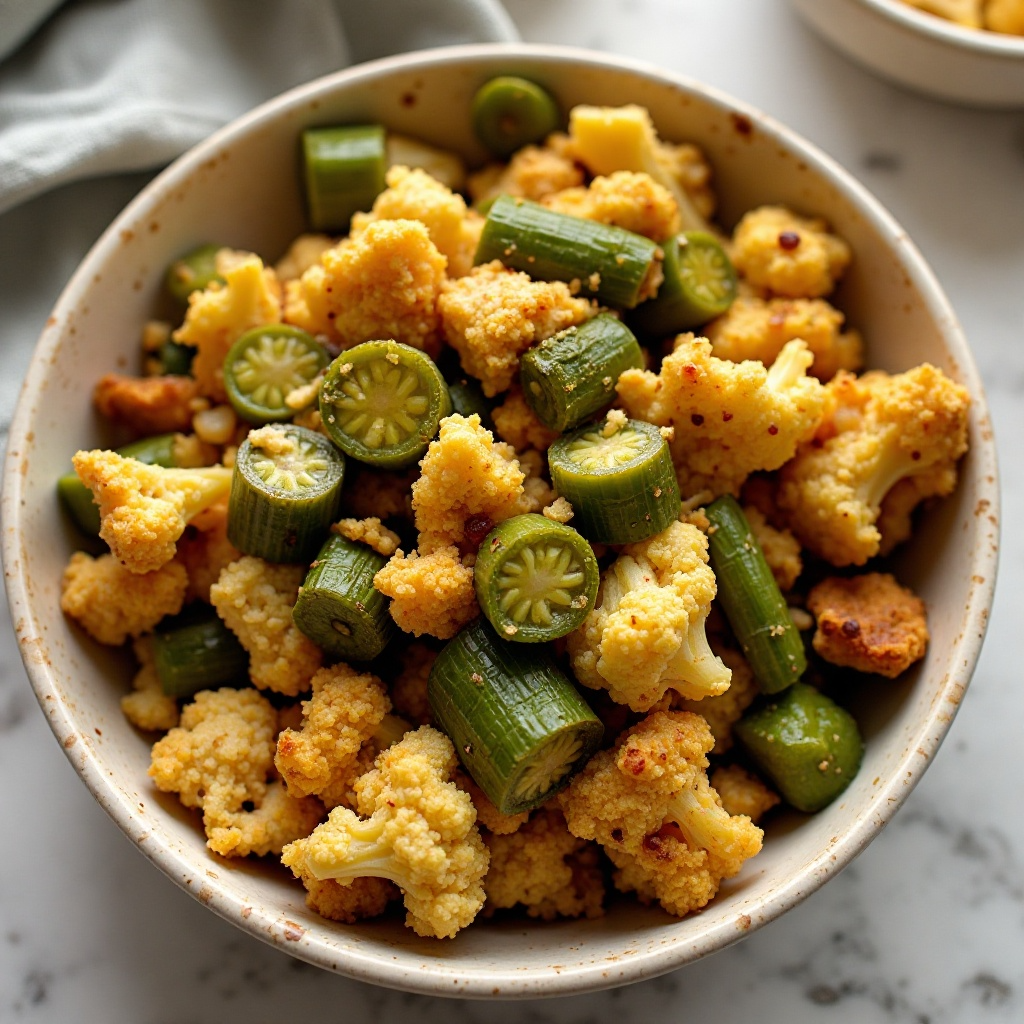 Receta de Okra Frita con Pollo y Coliflor, inspirada en Lawton, Oklahoma