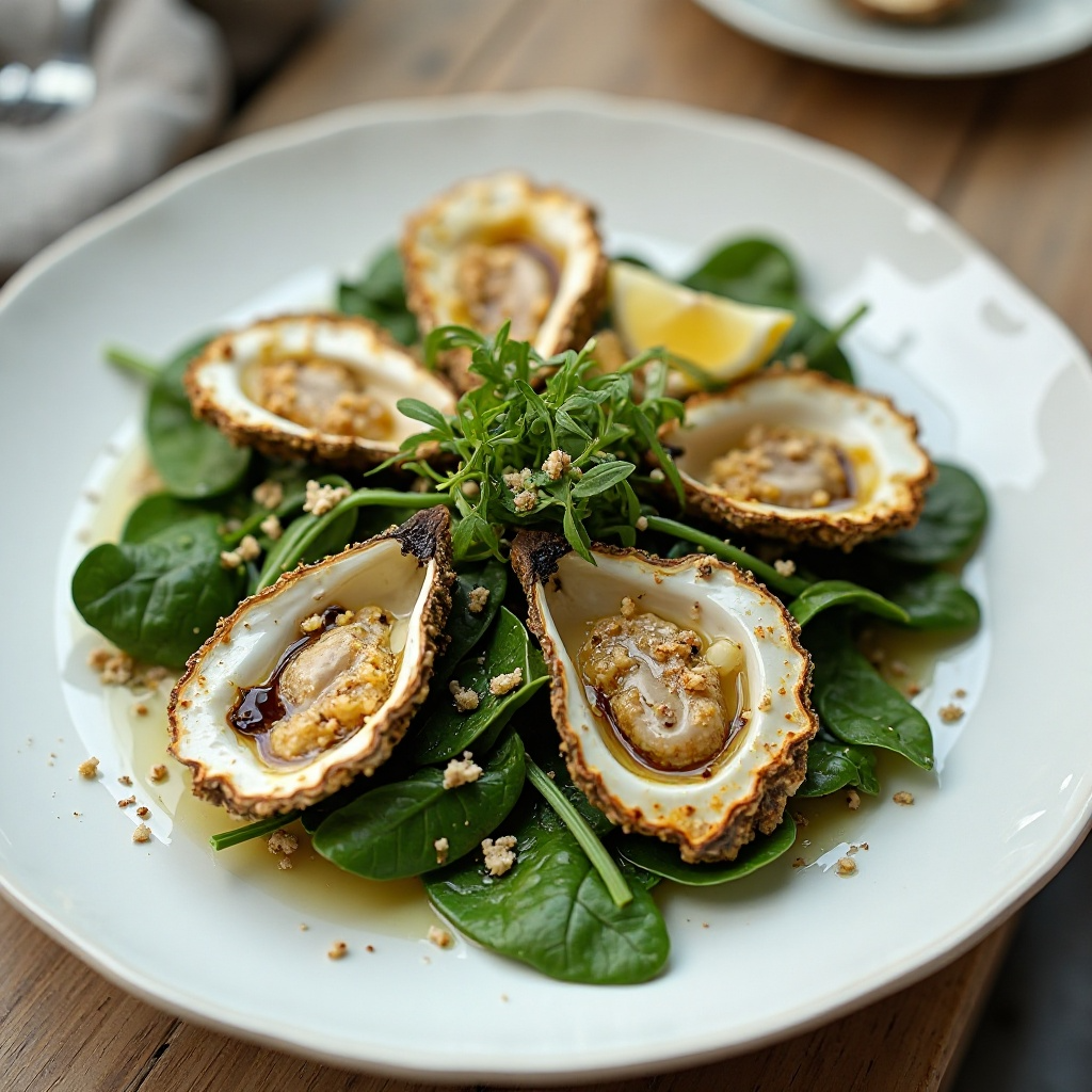 Receta de Ostras Frescas de la Bahía de Chesapeake con Ensalada de Limón y Espinacas
