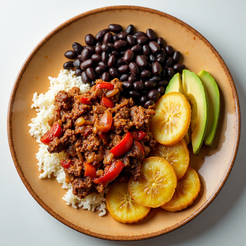 Este plato es muy completo desde el punto de vista nutricional, pues combina proteínas, carbohidratos y grasas saludables. Si deseas una versión más ligera, puedes reducir la cantidad de aceite en la preparación de la carne y optar por plátanos horneados en lugar de fritos. Además, el aguacate aporta grasas saludables y es rico en fibra.