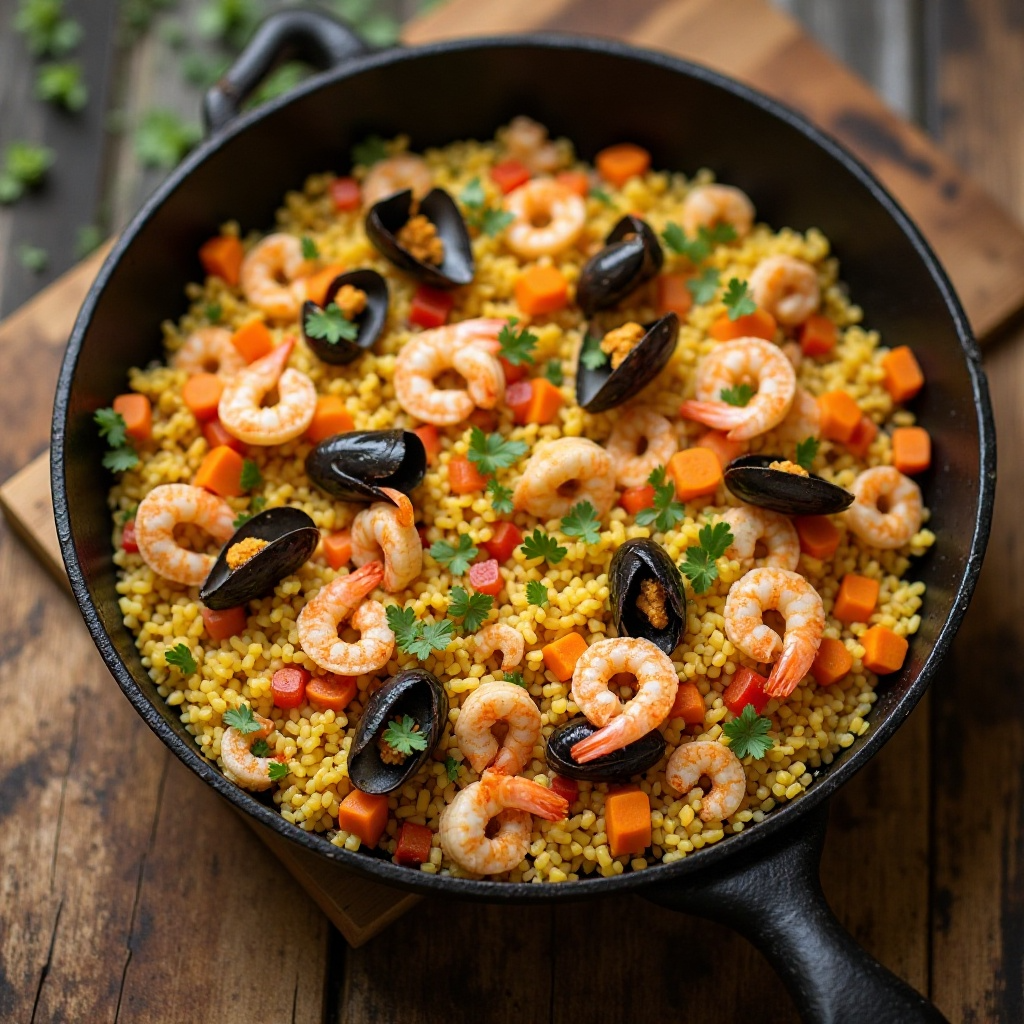 - Cocina a fuego medio, cubriendo la paellera con una tapa, durante unos 20 minutos o hasta que el arroz esté cocido y los mariscos estén listos.