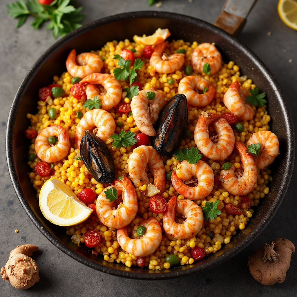 La paella es un plato emblemático de Valencia, España, conocido por su versatilidad y rica historia culinaria. Esta versión especial incorpora el vino Carmona, reconocido por su calidad y origen en la región española de Andalucía. Añade un toque distintivo de profundidad a los sabores de esta paella vibrante.