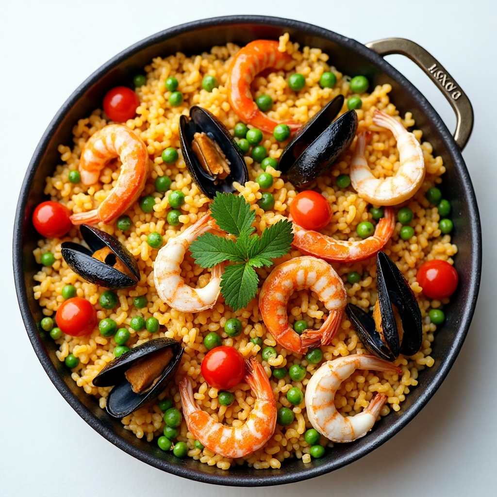 En Llafranc, una encantadora ciudad costera en la provincia de Tarragona, España, el mar y la viticultura se encuentran armoniosamente. Este plato innovador de paella incorpora un toque único de cava, un vino espumoso emblemático de la región, para añadir un brillo especial a los sabores tradicionales de la paella.
