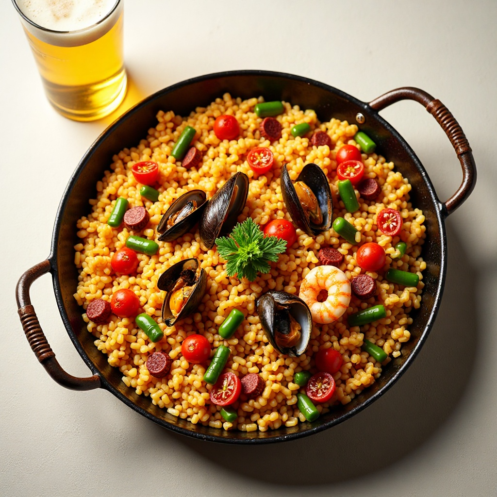 Parker, siendo un entusiasta de la cerveza artesanal, estaría encantado con esta versión innovadora de la clásica paella, que incorpora elementos que evocan la experiencia de degustar su bebida favorita. Este plato es perfecto para ocasiones especiales o simplemente para deleitarse en una comida sabrosa.