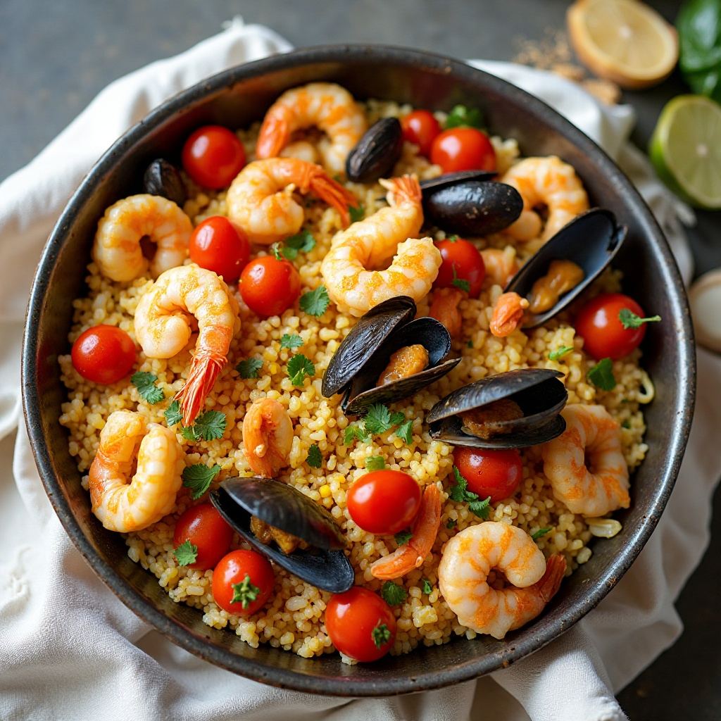 Esta receta es baja en grasas saturadas y rica en proteínas de mariscos, fibra y antioxidantes. Los mejillones son una excelente fuente de zinc y hierro, mientras que los calamares aportan ácidos grasos omega-3 beneficiosos para la salud cardiovascular. Asegúrate de cocinar los mariscos adecuadamente para eliminar cualquier bacteria potencial.