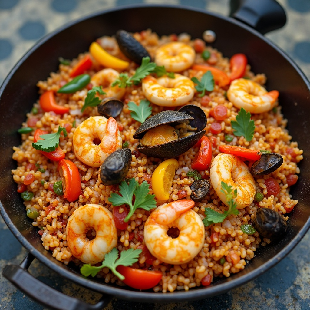 Las Islas Salomón, ubicadas en el Pacífico Sur, son famosas por su rica cultura y tradición marítima. Este plato de paella de mariscos captura esa esencia, ofreciendo una combinación sabrosa y colorida de frutos del mar frescos. Perfecto para una comida festiva o un almuerzo relajado, este plato es fácil de preparar y lleno de sabor.
