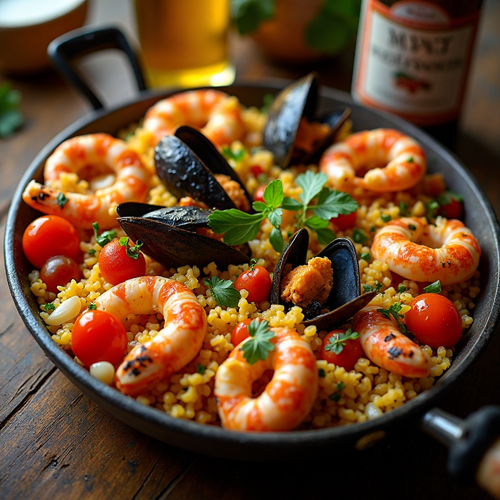 La paella de mariscos es una receta clásica que ha sido adoptada y adaptada en muchas partes del mundo, incluyendo Ames, Iowa. Esta versión innova incorporando la esencia aromática de una cerveza artesanal estadounidense, que le añade un toque distintivo a esta deliciosa preparación. Ideal para compartir en reuniones familiares o eventos sociales.