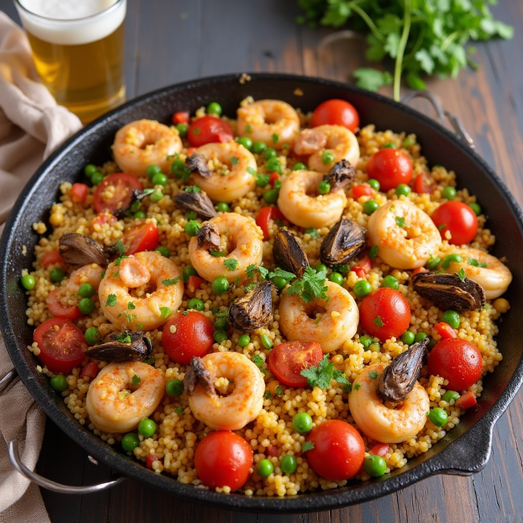 La paella de mariscos es baja en grasas saturadas y rica en proteínas, minerales y vitaminas gracias a los mariscos. La cerveza artesanal «Hoppy» aporta compuestos como el hocusídeo, conocido por sus beneficios antioxidantes. Sin embargo, debes tener en cuenta que el contenido de alcohol de la cerveza puede variar, así que si deseas una versión sin alcohol, puedes usar un extracto de malta para replicar el sabor.