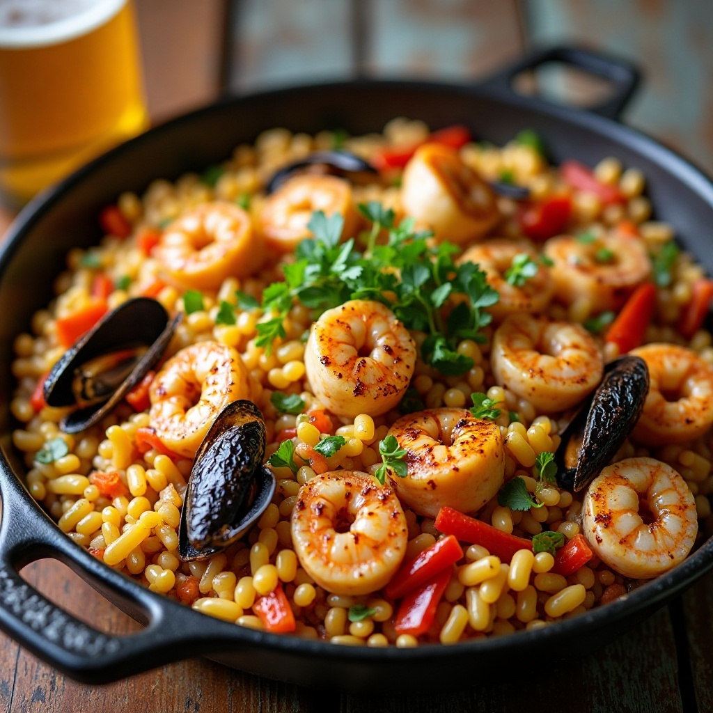 La paella es un plato tradicional español que ha encontrado su lugar en los menús modernos de todo el mundo. Aquí te presento una versión innovadora que incorpora sabores de la cerveza artesanal local, algo común en las vibrantes tabernas de Vail, Colorado. Esta receta es ideal para reuniones familiares o cenas especiales, y ofrece una textura y sabor únicos que capturan la esencia del oeste americano.
