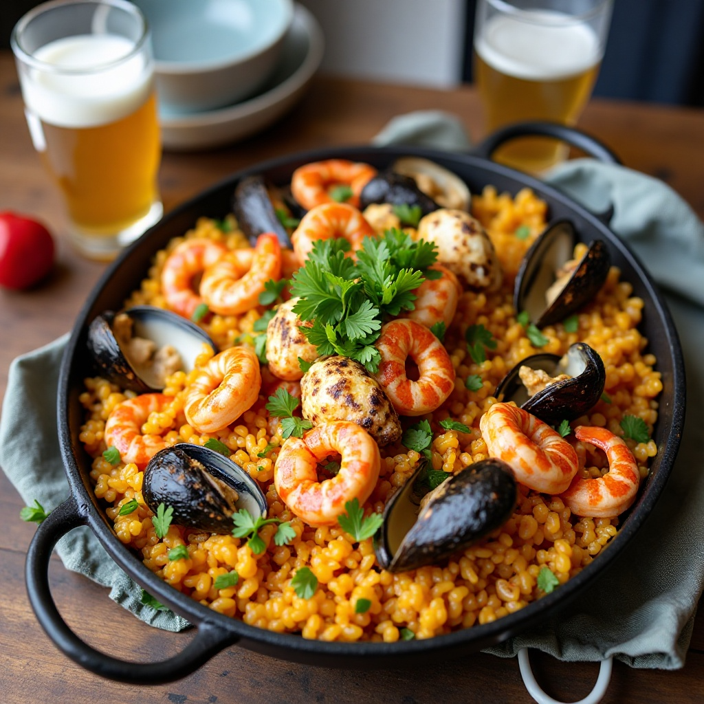 Receta de Paella de Mariscos con Toques de Cerveza Artesanal