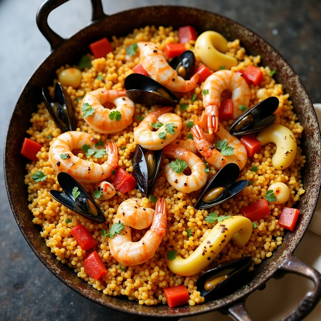 Receta de Paella de Mariscos con Toques de Ensaimada