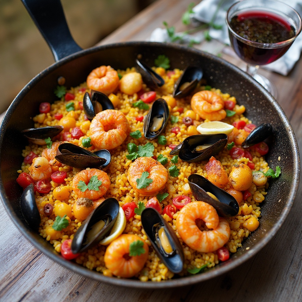 La paella es un plato emblemático de la cocina valenciana, pero en Ribadavia, una región vinícola de Galicia, se le da un toque muy gallego. Esta versión utiliza mariscos frescos y un vino de Ribeiro para Ribadavia que le aporta un sabor único y afrutado, típico de esta región vinícola.